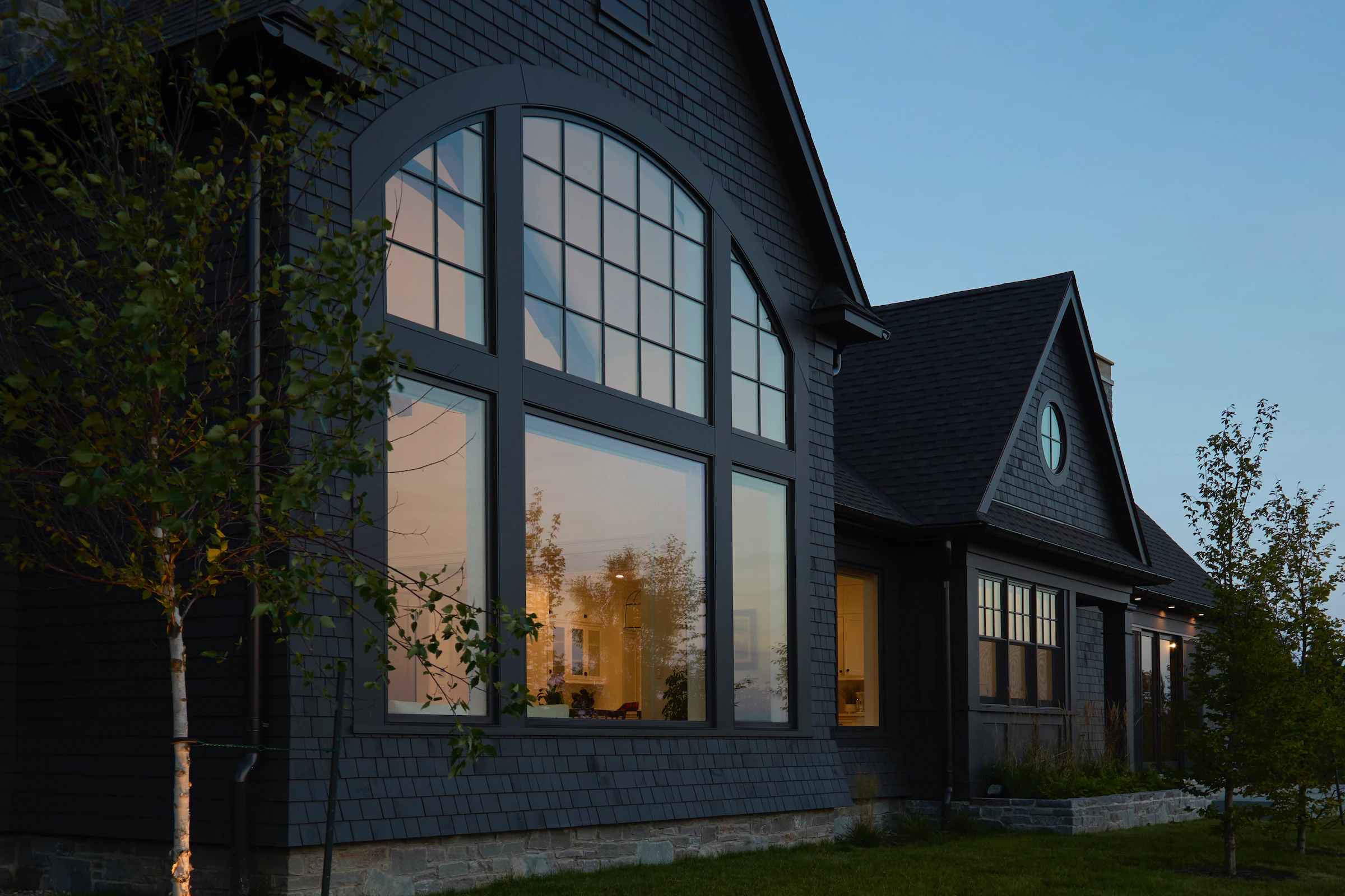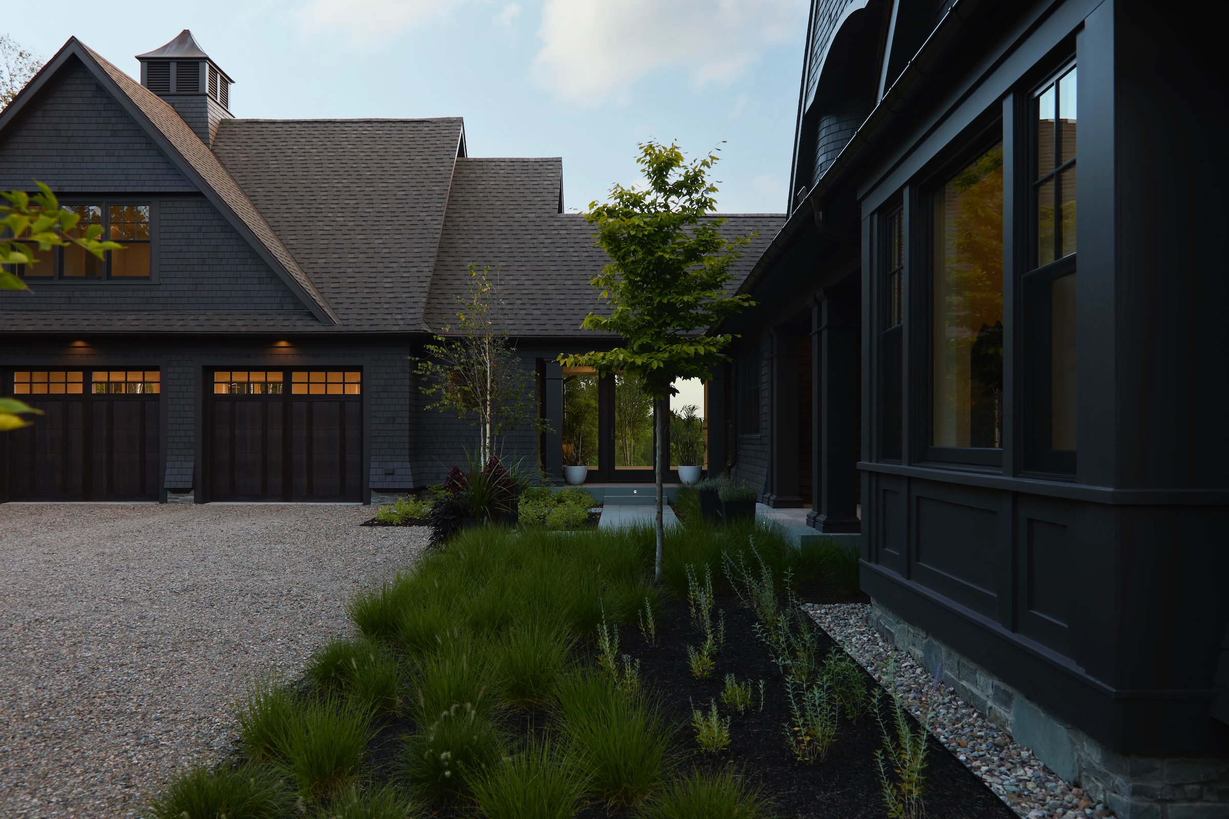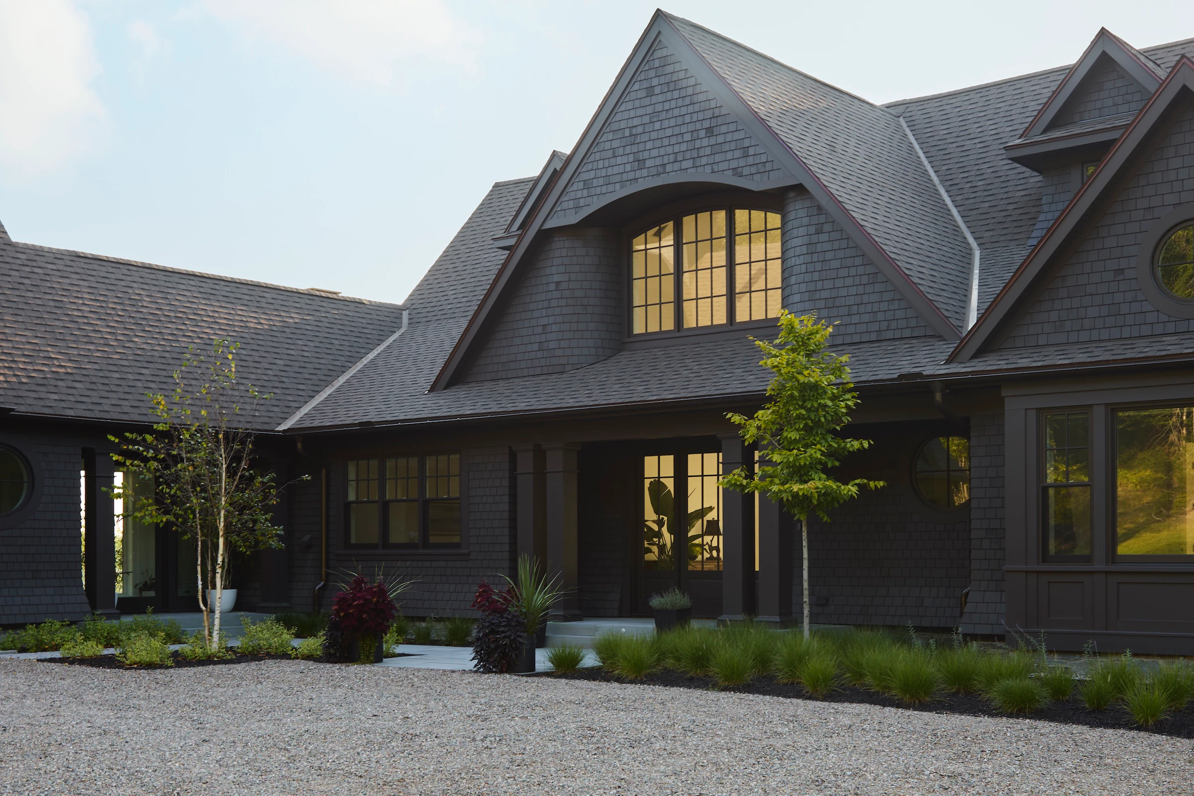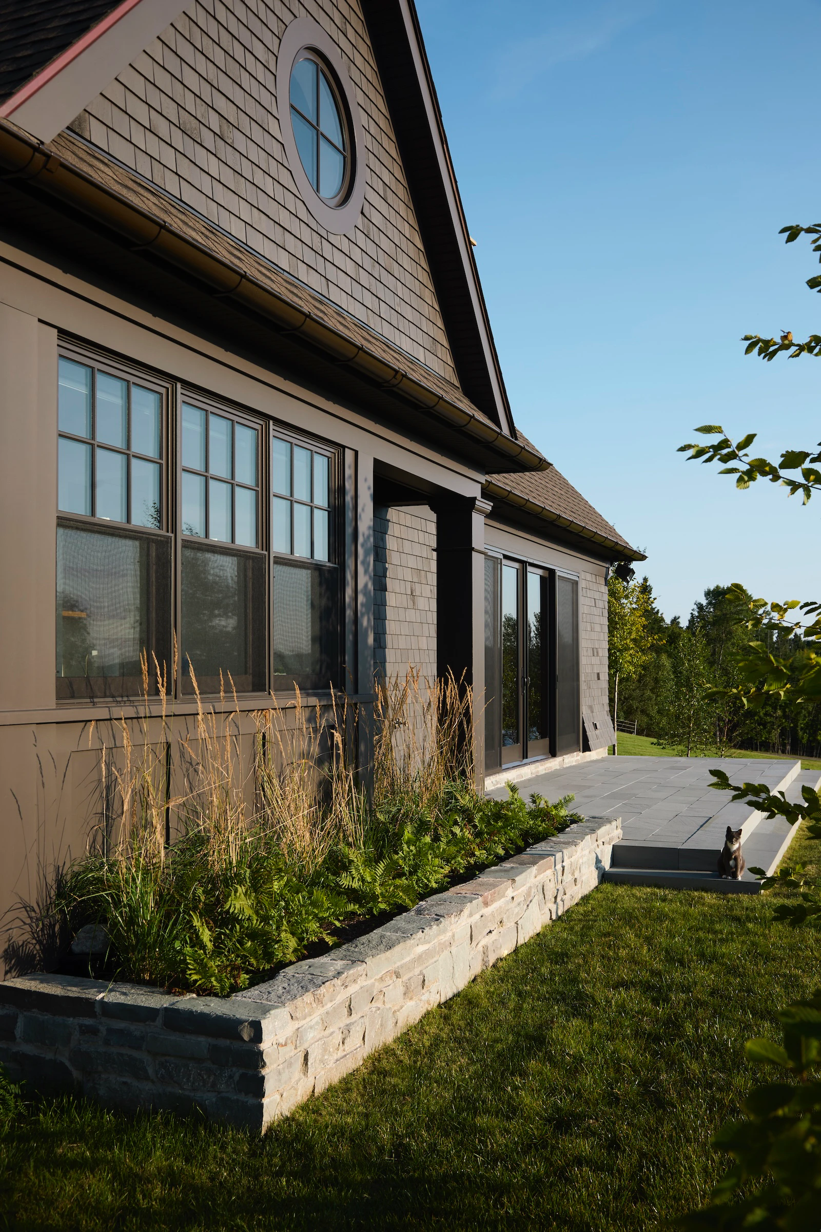 Construite par Rivir Builders , d'après l'architecture du studio ARCHwork et l'aménagement paysager du studio Brackish Design , cette maison allie le charme traditionnel d'une toiture en bardeau à un environnement d'une grande beauté. Nous avons eu le plaisir de fournir les fenêtres et les portes Marvin .