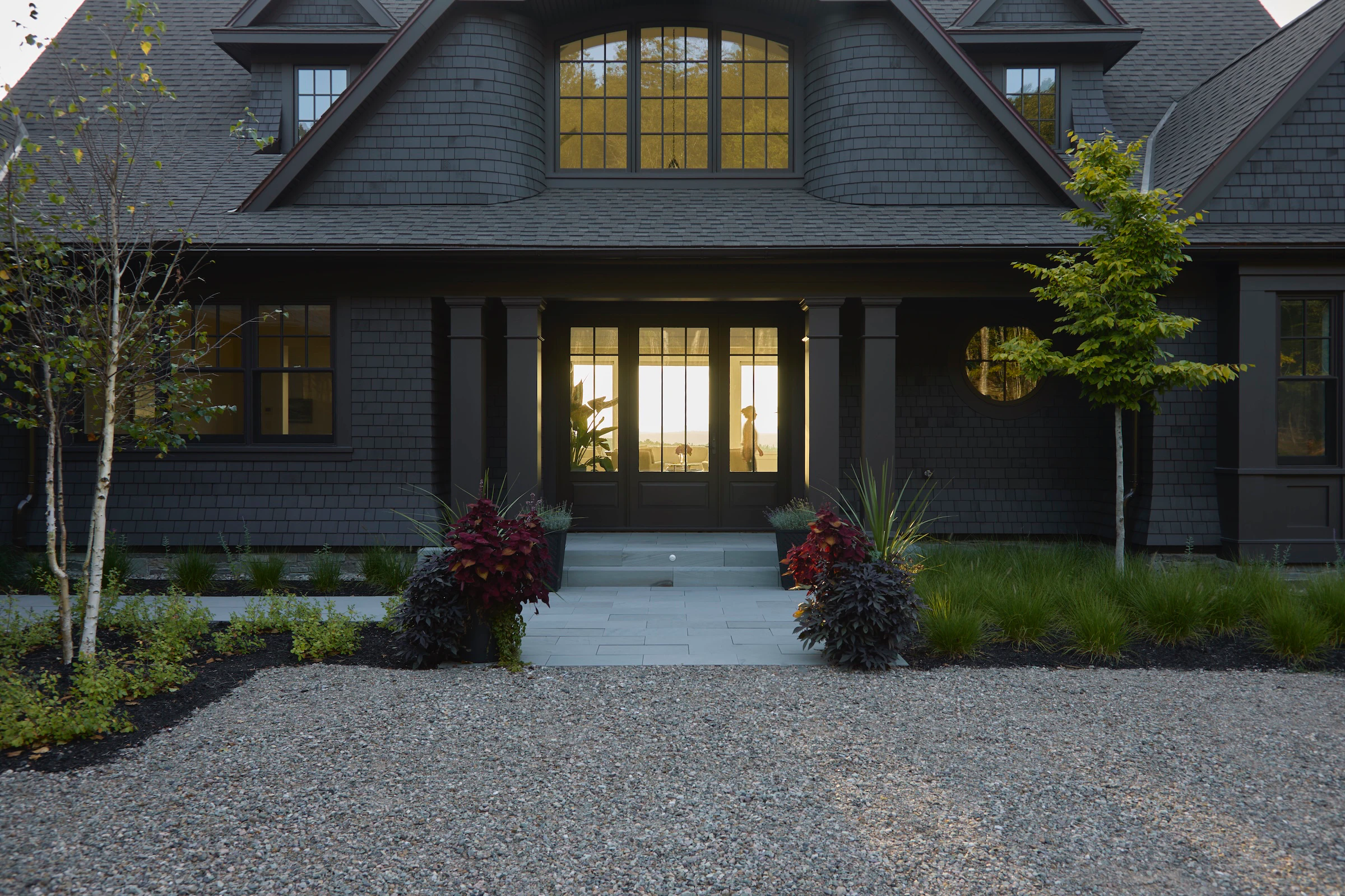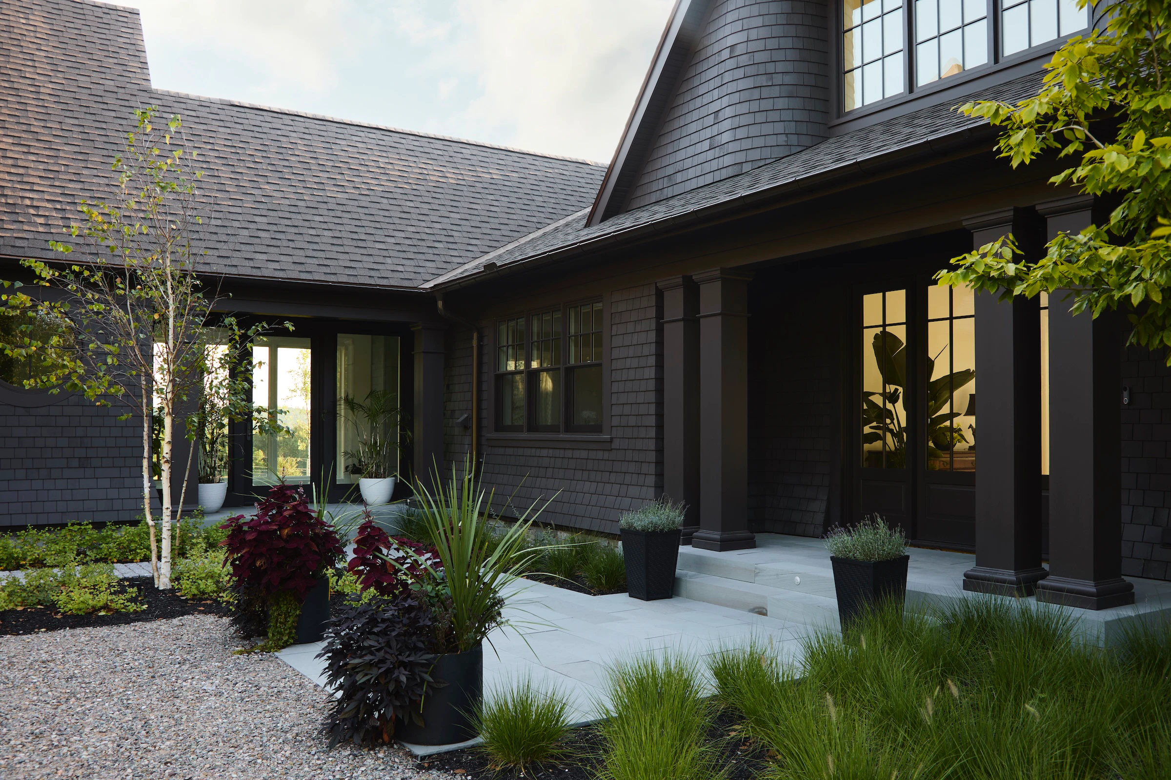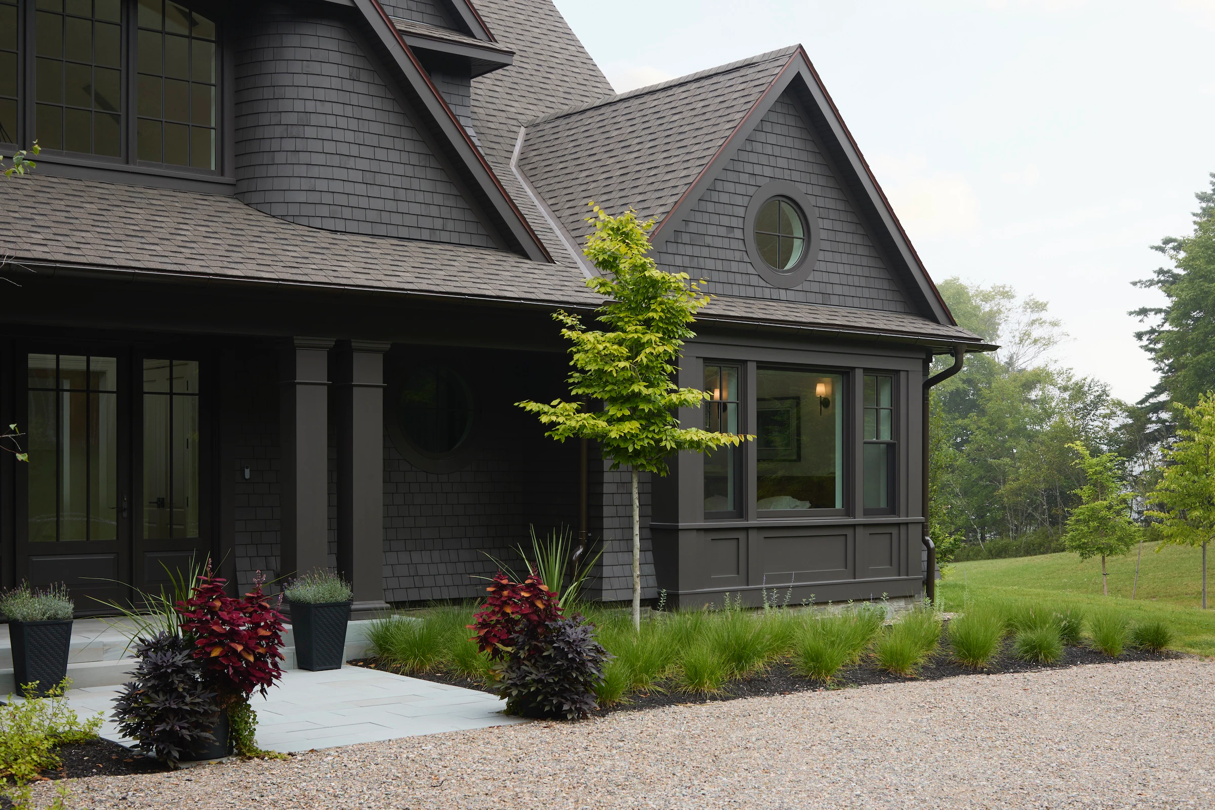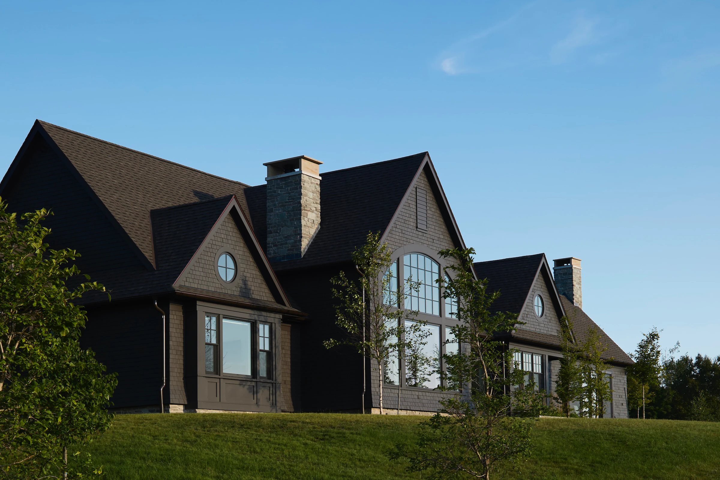 Construite par Rivir Builders , d'après l'architecture du studio ARCHwork et l'aménagement paysager du studio Brackish Design , cette maison allie le charme traditionnel d'une toiture en bardeau à un environnement d'une grande beauté. Nous avons eu le plaisir de fournir les fenêtres et les portes Marvin .