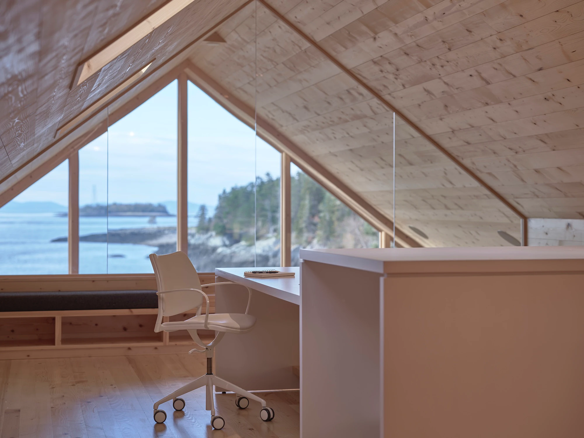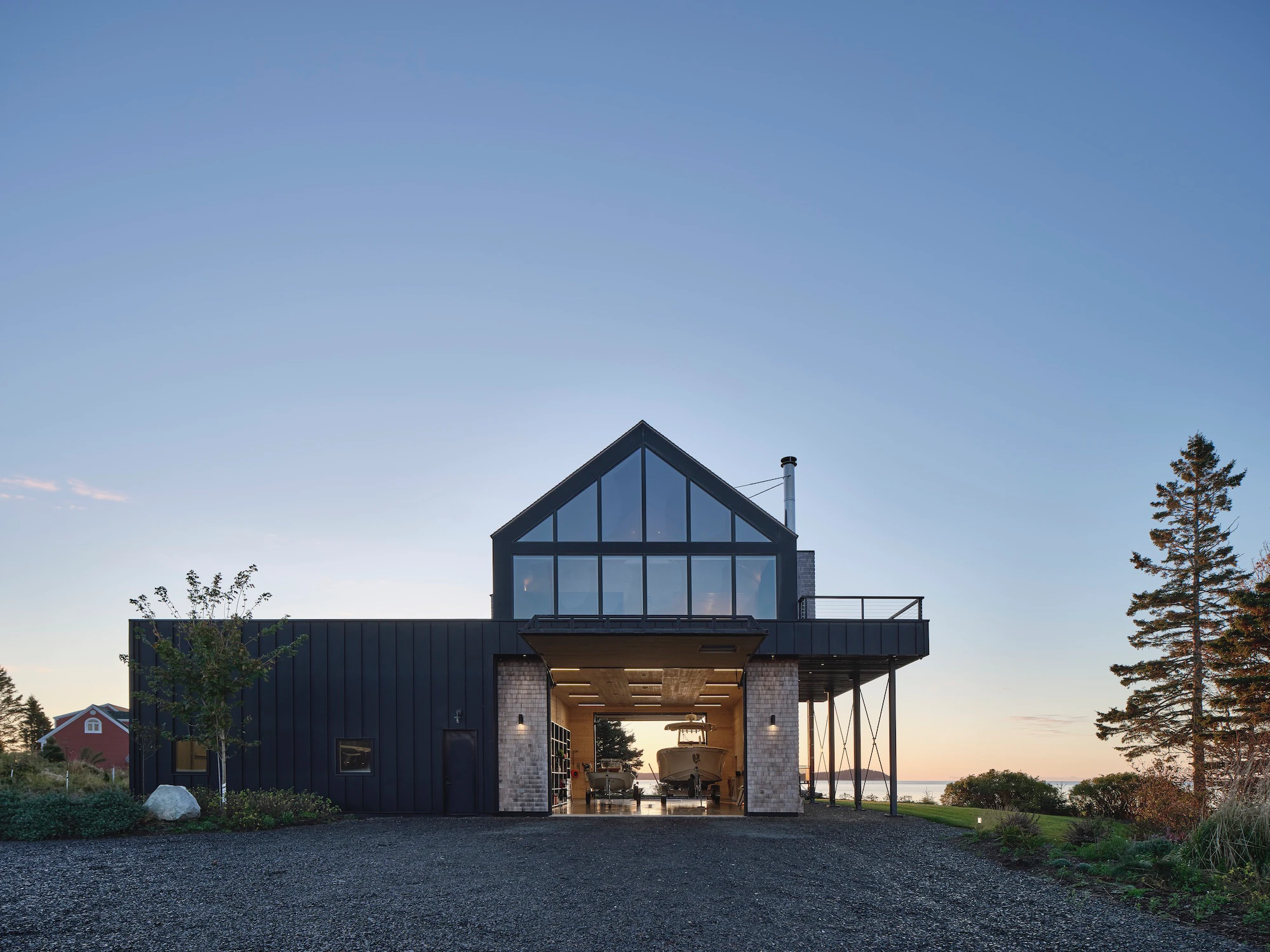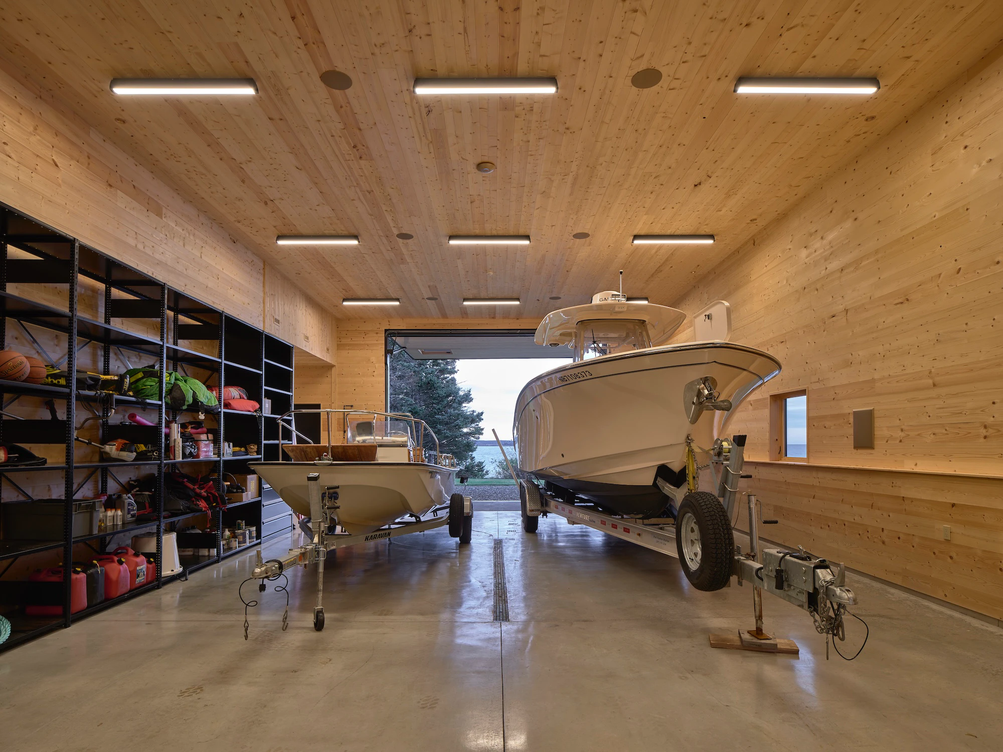 What makes this project especially interesting is how much it asks of an accessory structure. It is not just storage. It is workshop, hangout space, guest space, and a place to take in the water. That mix of utility and comfort comes through clearly in the form of the building, which feels clean and purposeful from the outside, then much warmer and more expressive once you get inside.
