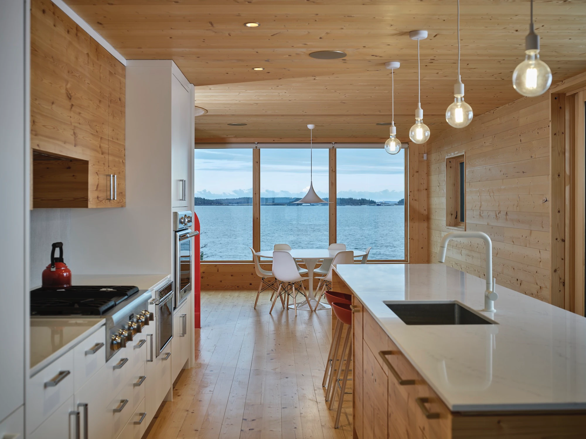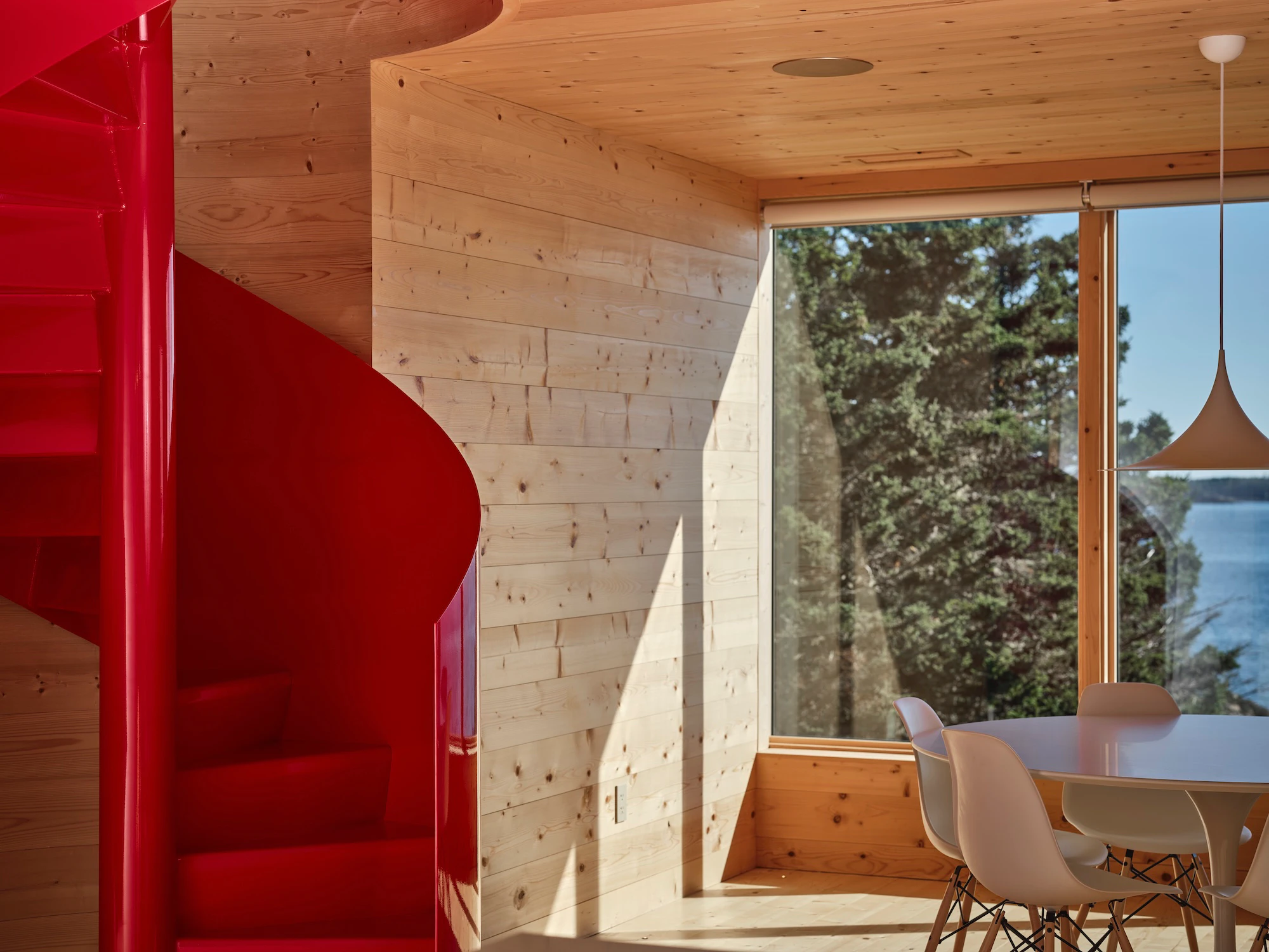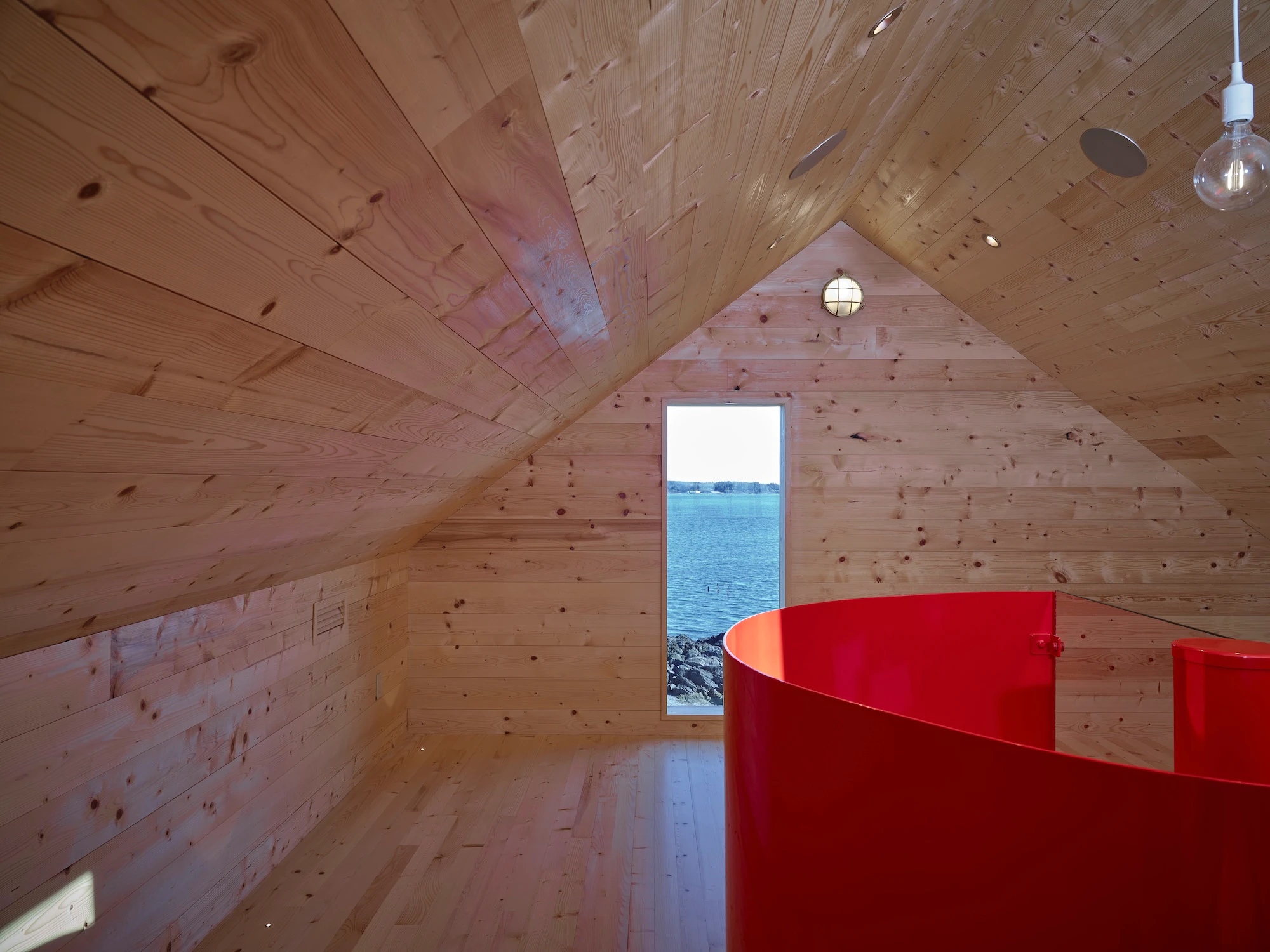 What makes this project especially interesting is how much it asks of an accessory structure. It is not just storage. It is workshop, hangout space, guest space, and a place to take in the water. That mix of utility and comfort comes through clearly in the form of the building, which feels clean and purposeful from the outside, then much warmer and more expressive once you get inside.