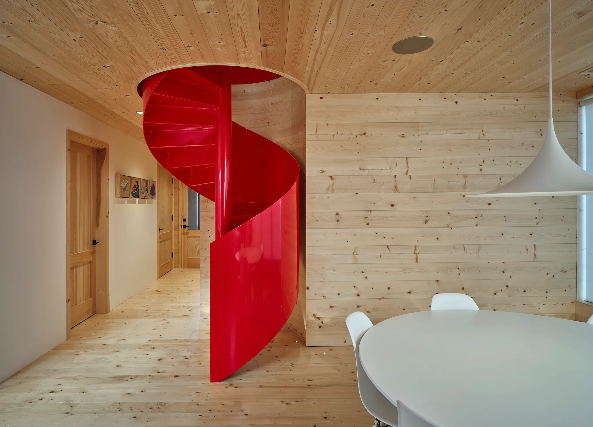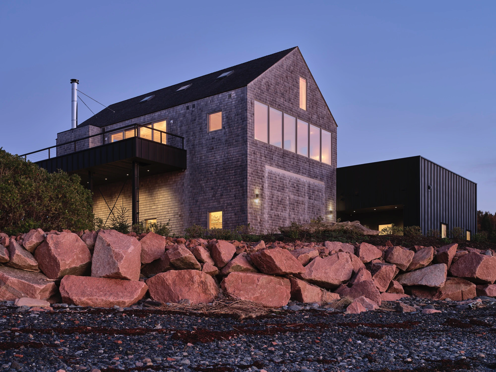 Set beside its sister project, The Sheds of Charlotte County, The Boat Shed takes on a different role while carrying forward the same thoughtful design language. The general contractor, Rivir Builders, describes it as a generous main-level garage for boats and cars, with living quarters above that include a bespoke spiral staircase, strong natural materials, and the same panoramic views that define the main house. Acre Architects led the design, and photography is by Julian Parkinson.